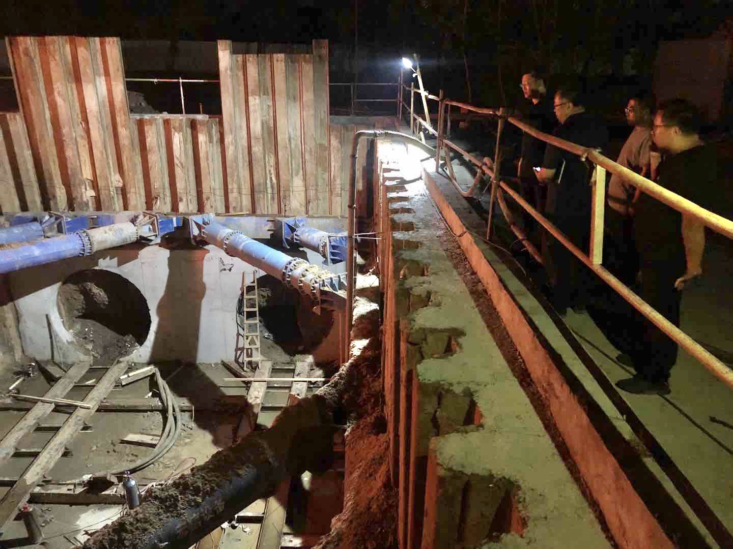 2020年8月24日晚,山東公用熱電集團(tuán)黨委副書記、濟(jì)寧四和供熱有限公司董事長李聲播帶領(lǐng)四和供熱公司班子成員,深入熱源替換項(xiàng)目工程6個(gè)標(biāo)段,檢查督導(dǎo)施工現(xiàn)場各項(xiàng)工作。并于25日凌晨,在南躍進(jìn)溝工地主持召開基坑支護(hù)、頂管作業(yè)專項(xiàng)施工安全現(xiàn)場調(diào)度會,工程項(xiàng)目相關(guān)單位負(fù)責(zé)人共同參會。