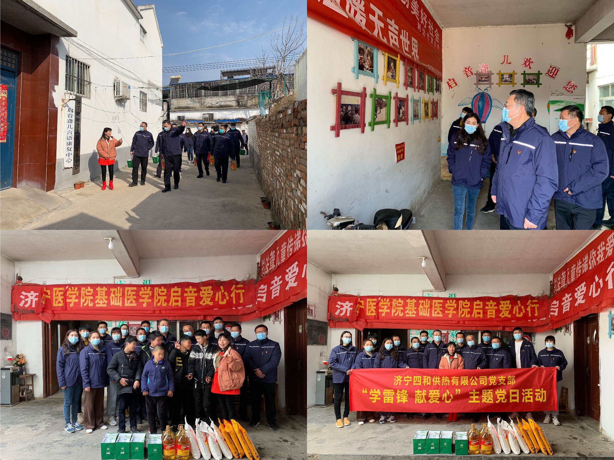 為傳承雷鋒精神,彰顯國企擔當,喜迎建黨100周年。3月5日上午,在學雷鋒紀念日來臨之際,濟寧四和供熱有限公司黨支部班子帶領(lǐng)公司黨員前往啟音聾兒言語康復(fù)中心開展“學雷鋒 獻愛心”主題黨日活動,為孩子們送去了關(guān)懷與溫暖。