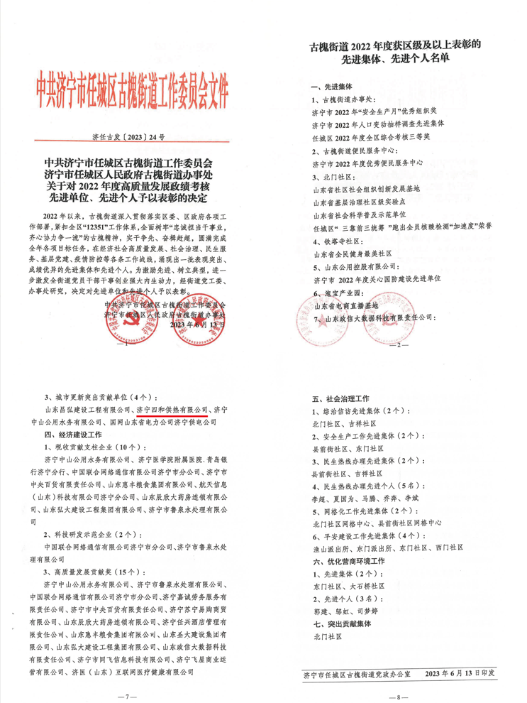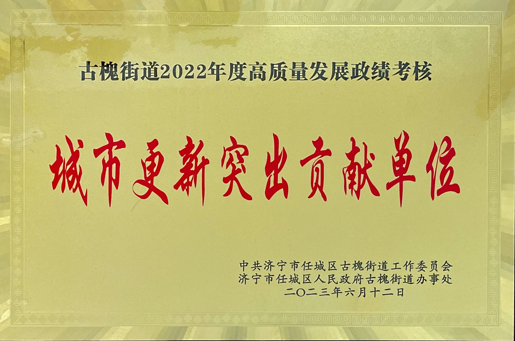 濟寧四和供熱有限公司榮獲古槐街道 2022年度“城市建設(shè)突出貢獻(xiàn)單位”表彰